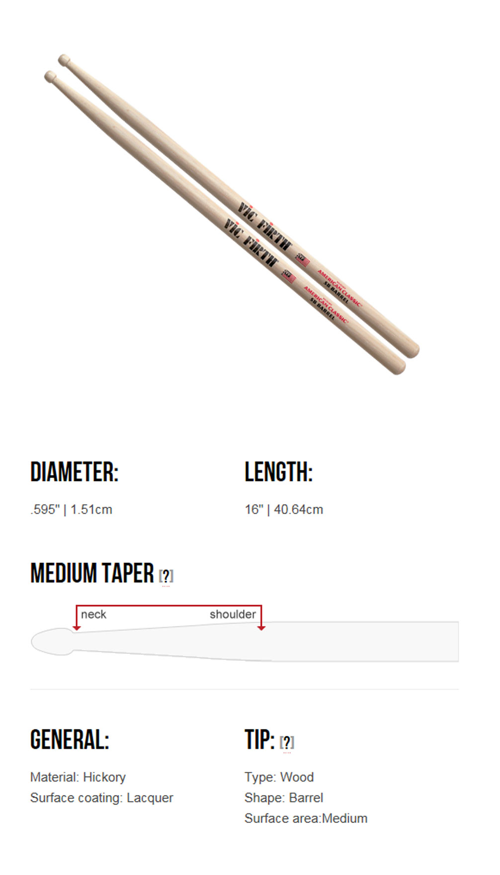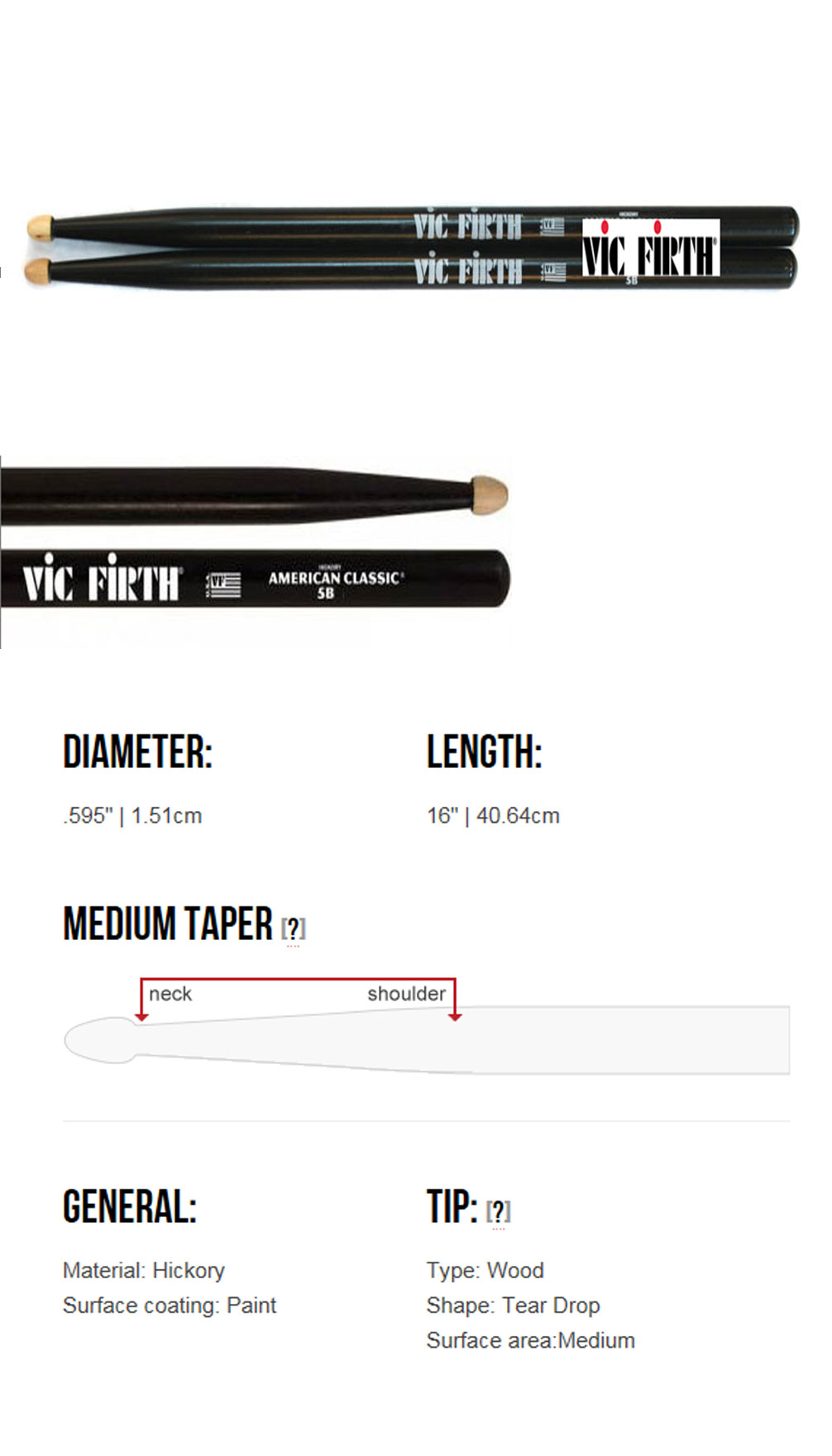 Vic Firth 5B American Classic 빅퍼스 히코리 우드팁 드럼스틱 X5B 5BPG 5BDG 5BB 5BW 5BBRL