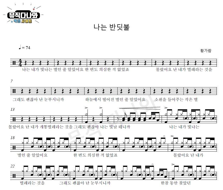 황가람 - 나는 반딧불 [원곡버전] 음원&드럼악보 입니다^^