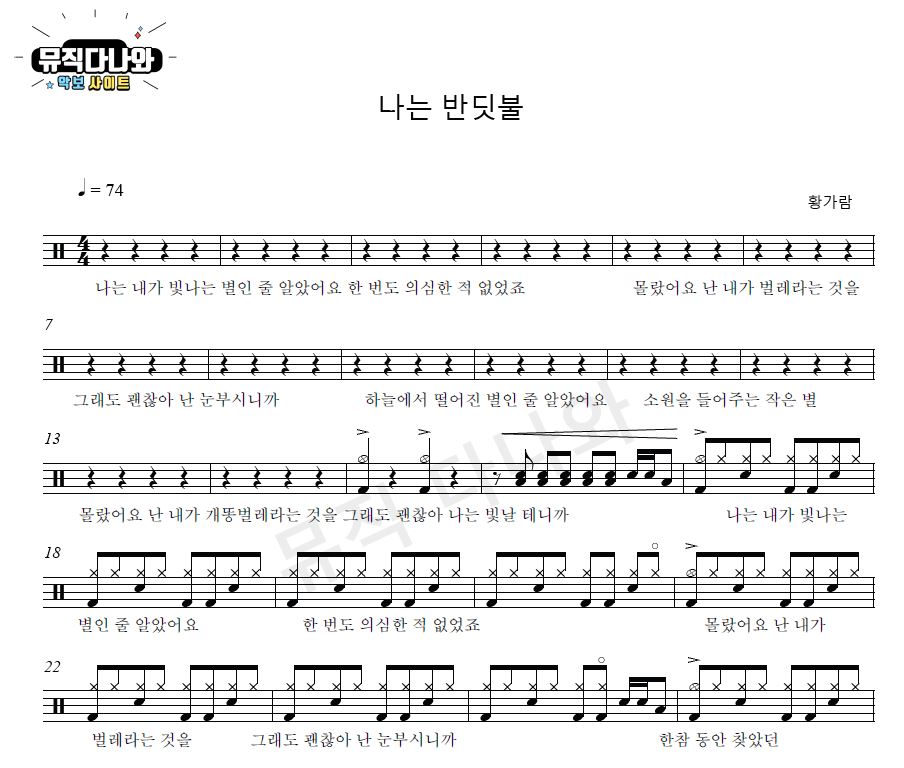 ▼ 아래는 황가람 - 나는 반딧불 [쉬운버전] "드럼악보 샘플" 입니다.