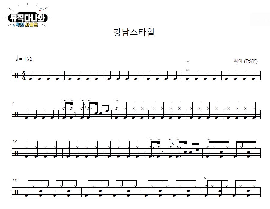 ▼ 아래는 싸이 - 강남스타일 (가사X) "드럼악보 샘플" 입니다.