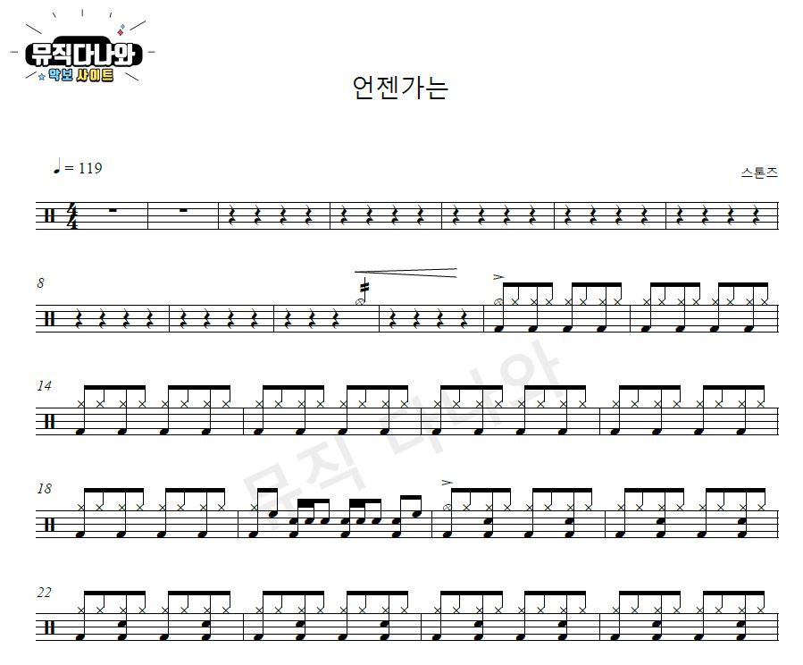 ▼ 아래는 스톤즈(Stones) - 언젠가는 (가사X) "드럼악보 샘플" 입니다.