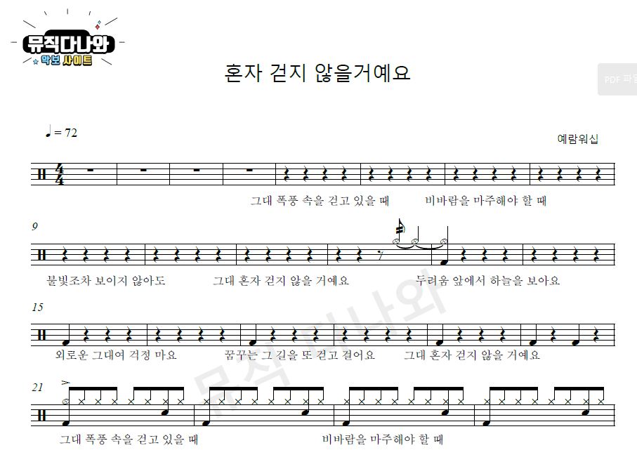 예람워십 - 혼자걷지않을거예요 음원&드럼악보 입니다^^